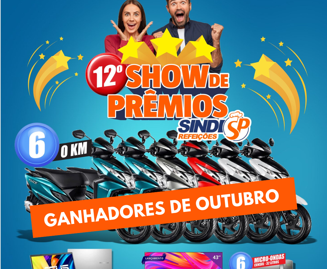 Atenção! No mês de novembro, próximo mês, no encerramento da campanha, serão sorteados ainda vários eletroeletrônicos, eletroportáteis, eletrodomésticos, além da super premiação de 6 motos Honda automáticas, 0 km. Uma pode ser sua! Fique ligado.